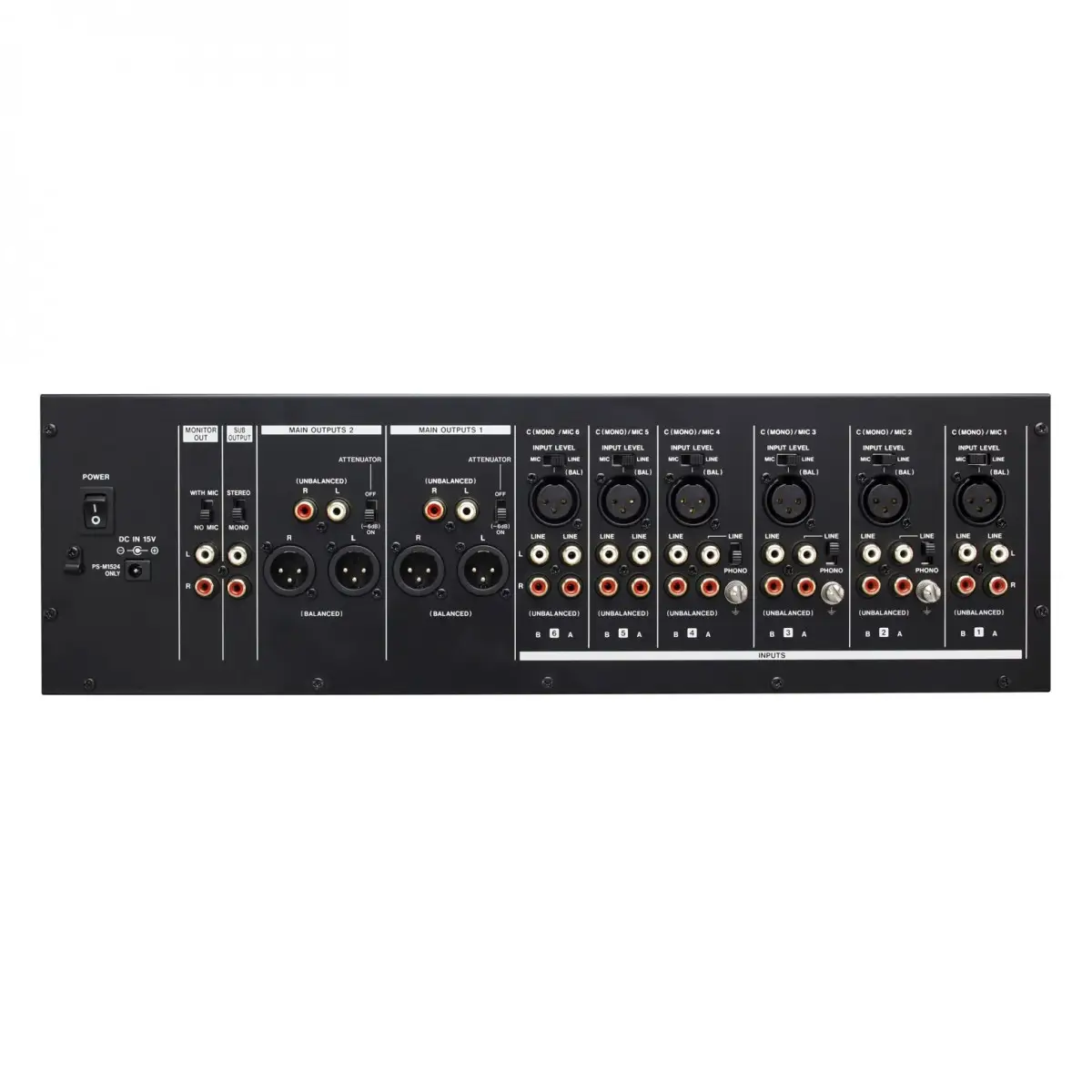 Le due zone di uscita posteriore offrono una combinazione di connessioni XLR bilanciate e RCA sbilanciate per consentire una facile integrazione in qualsiasi sistema audio. Questa flessibilità consente di selezionare, silenziare e/o inviare simultaneamente una combinazione di microfoni, lettori CD/DVD/Blu-ray e strumenti alle doppie uscite con i propri controlli di volume.