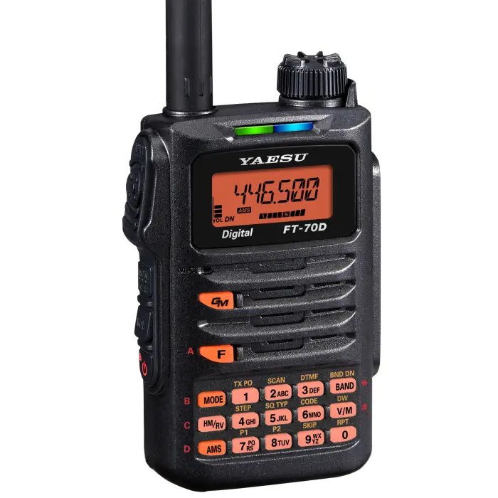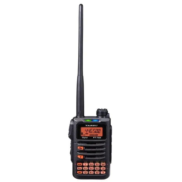 L'FT-70 DE è una radio portatile VHF-UHF dual-band compatta e versatile, progettata per operare in diverse condizioni ambientali.
