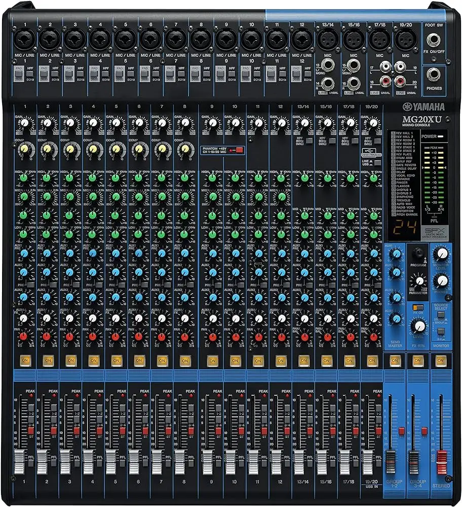 Mixer Yamaha MG20 XU, progettato per produzioni professionali e dotato di effetti di alta qualità.