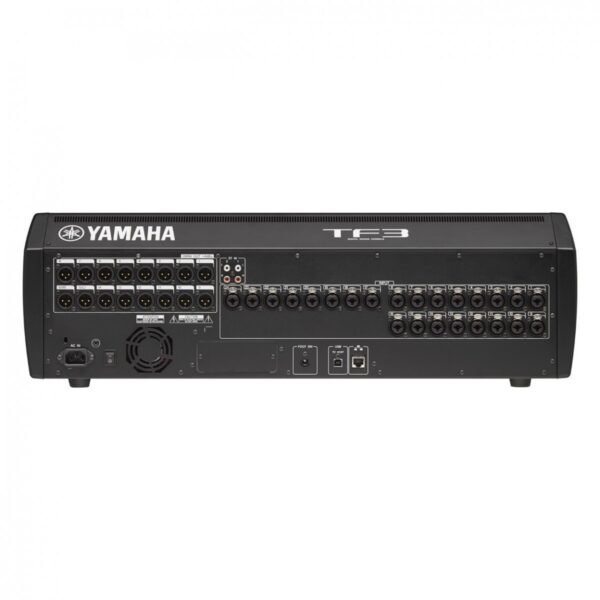 Lo Yamaha TF3 offre 48 mix di ingressi (40 mono, 2 stereo, 2 uscite stereo) con 24 ingressi analogici e 16 uscite analogiche, ogni canale di ingresso con guadagno digitale, due processori dinamici e un equalizzatore completamente parametrico a quattro bande. Un’uscita diretta per canale può essere toccata in 4 diverse posizioni: pre-DG, pre-HPF, pre fader o post fader.