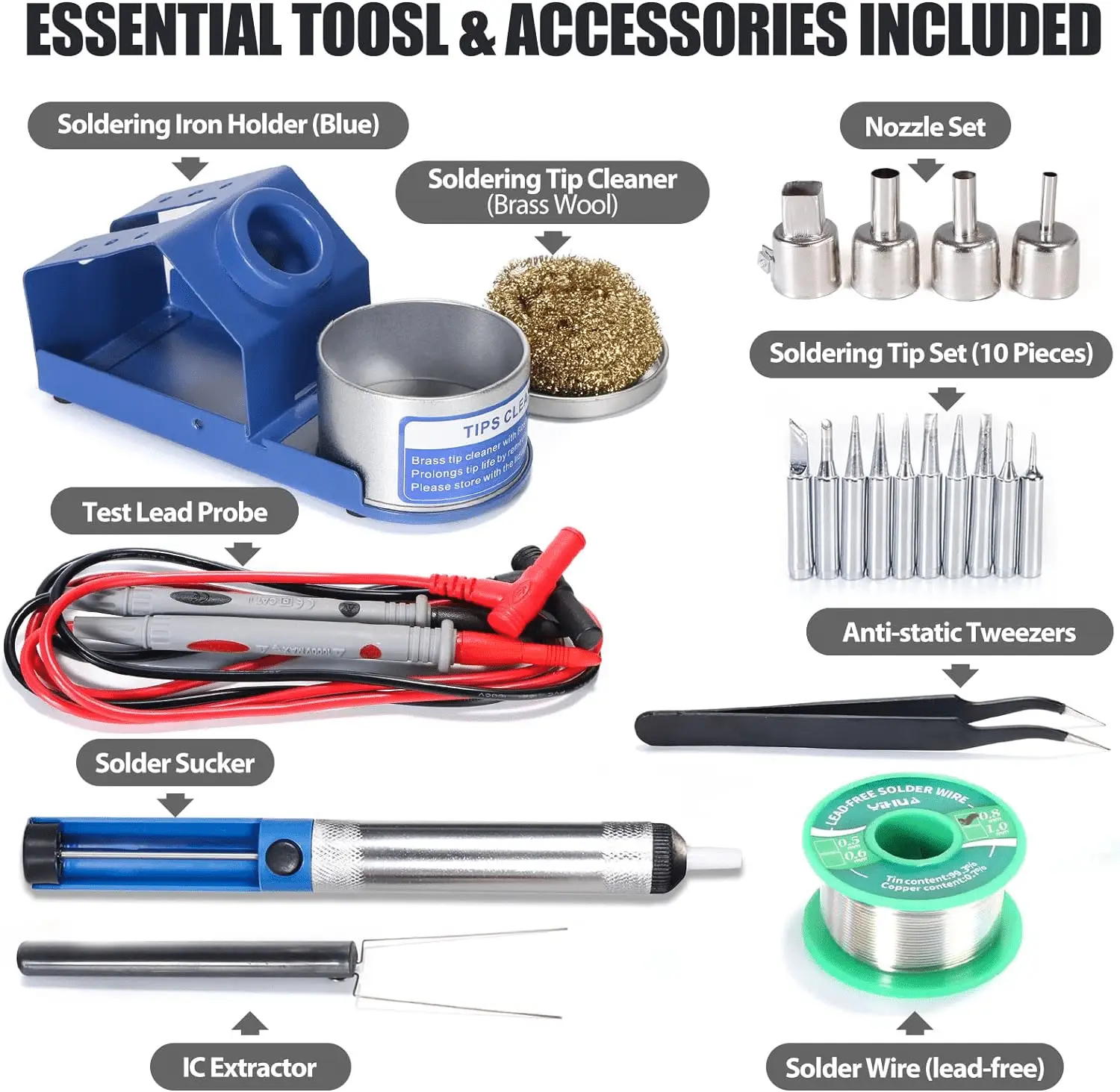Una stazione multipla integra una stazione di saldatura, una stazione saldante ad aria calda e un alimentatore DC (con funzione voltometro) con strumenti essenziali per saldatura, rilavorazione e dissaldatura. Non solo ti diamo TRE stazioni in UNA, puoi usarle tutte singolarmente o simultaneamente. Questa stazione multipla ti consente di lavorare senza interruzioni per i tuoi progetti di saldatura e rilavorazione, soprattutto se effettui riparazioni regolari di telefoni cellulari.