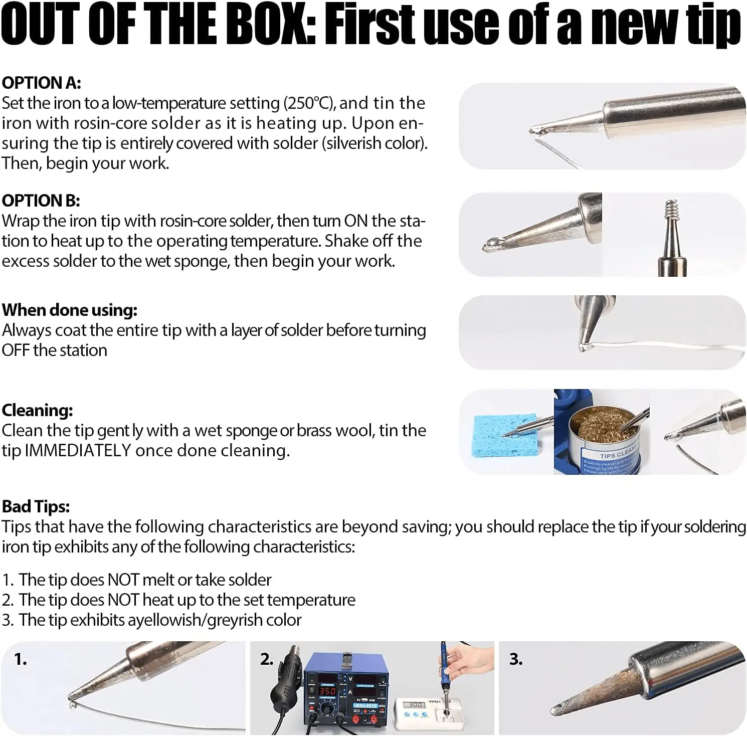 - Questa stazione 3 IN 1 è inoltre dotata di funzioni di precisione avanzate, come la calibrazione digitale della temperatura e le modalità di visualizzazione della temperatura C°/F°. È possibile correggere le discrepanze di temperatura del ferro semplicemente misurandone e inserendo il valore della temperatura effettivo nell’interfaccia di calibrazione.