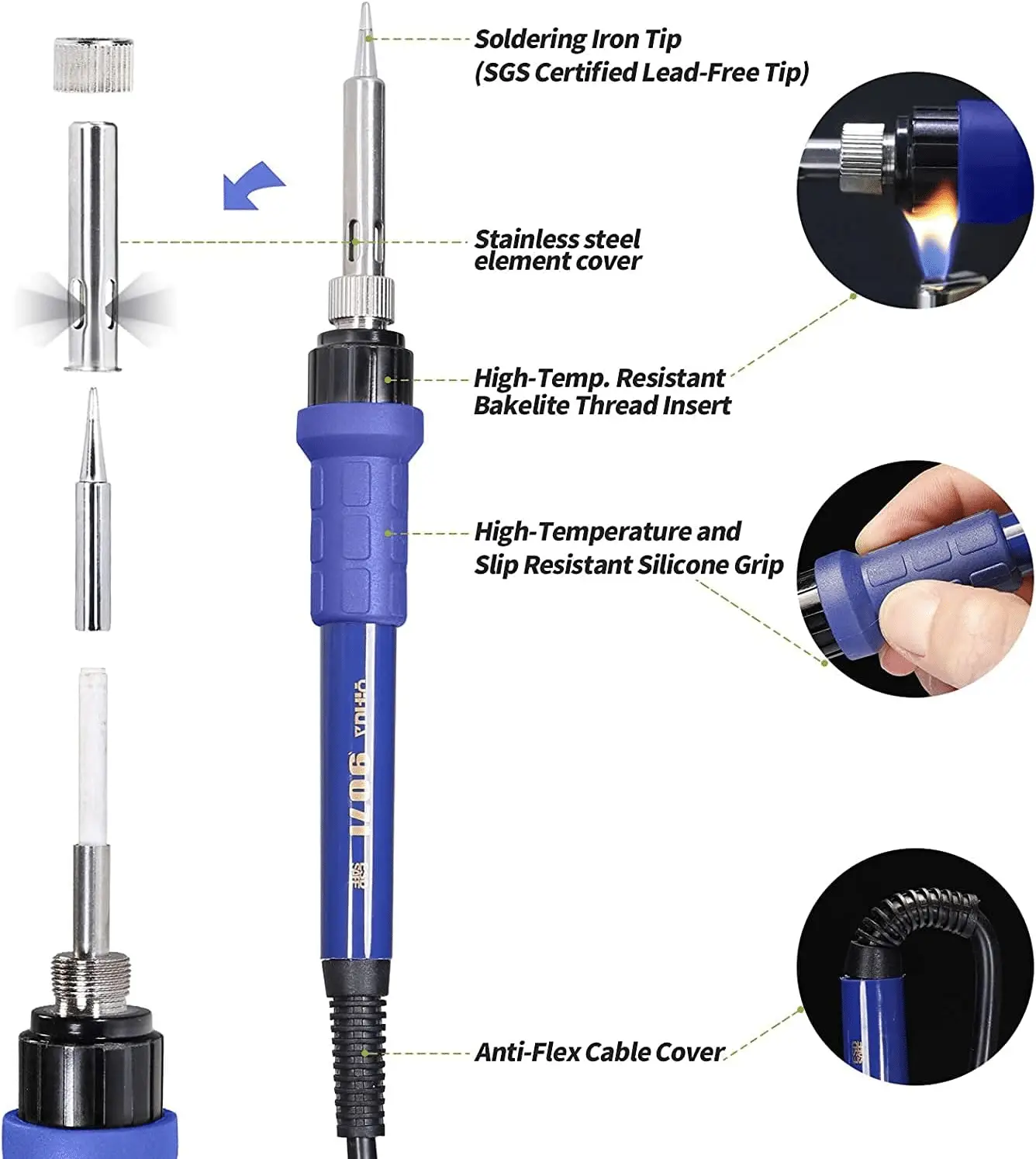 ConfrontaAggiungi alla Lista desideri- YIHUA 907I Sostituzione saldatore con impugnatura blu per YIHUA 862BD+ 938BD+I 948-II 853D 5A-II?SOLO PER MODELLO EUROPEO?